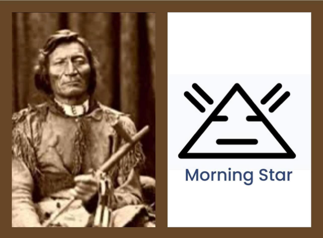 Vorige week nog een boek gekocht omdat het ineens zo belangrijk voelde dit toch te kunnen achterhalen maar ik vond het niet. Tot ik deze week in een afstemming voelde dat hij bij mij was. Ik zag met gesloten ogen een tatoo op mijn arm verschijnen van een symbool. Thuis ging ik op zoek naar dit symbool op internet en ik vond het! Het had zelfs een naam “Morning Star” Met als ondertiteling “guidance”. Ik was geraakt en in de avond zocht ik opnieuw de afbeelding op via Morning Star en Indiaan. Mijn adem stokte nadat ik het had ingetypt want een plaatje van mijn gids kwam te voorschijn. Daar was hij! Zolang had ik hem gezocht….. en nu stond hij op een afbeelding met de woorden dat hij ooit een opperhoofd van de Cheyenne-stam was. Ik was en ben er van overrompeld… via de afstemming naar de tattoo, via het onderschrift van de tattoo naar de naam van mijn gids en via deze naam naar het leven wat hij ooit heeft gehad.